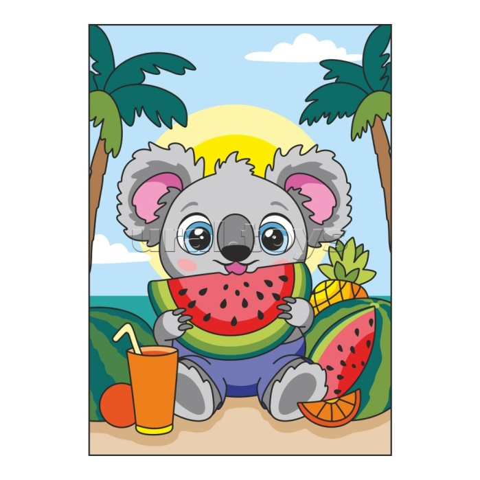 Картина по номерам для малышей на картоне 20х30 "Коала с арбузом"