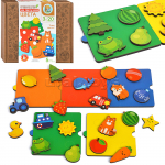 Набор не содержит ничего лишнего – все составляющие игры выполнены из безопасных материалов и окрашены в яркие цвета – такая игра обязательно привлечёт внимание малыша.