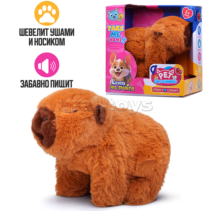 Мягкая игрушка E -2O "Капибара" (шевелит ушами и носиком, издаёт звуки)