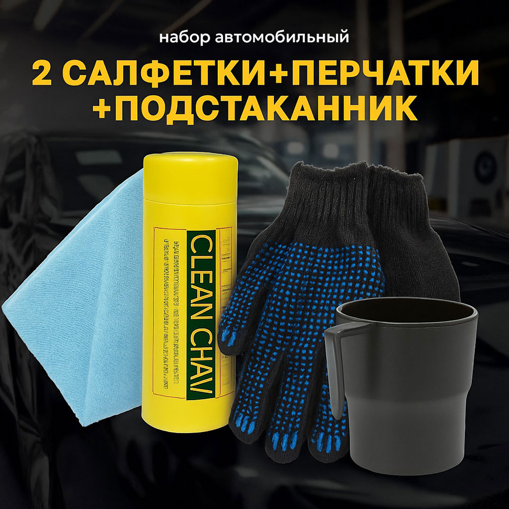 Набор автомобильный (салфетка в тубе+салфетка+перчатки+подстаканник) 871860