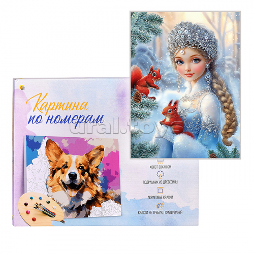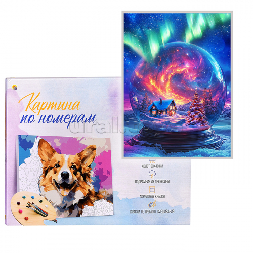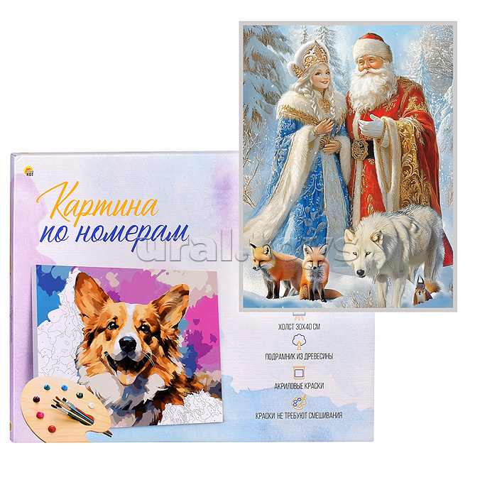 Холст с красками 30х40 по номерам "Дед Мороз и внучка" в коробке (30цв.)