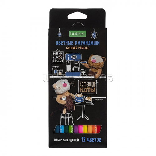 Карандаши цветные 6цв. ECO "Кофейные коты" заточен. в карт. коробке с европодвесом
