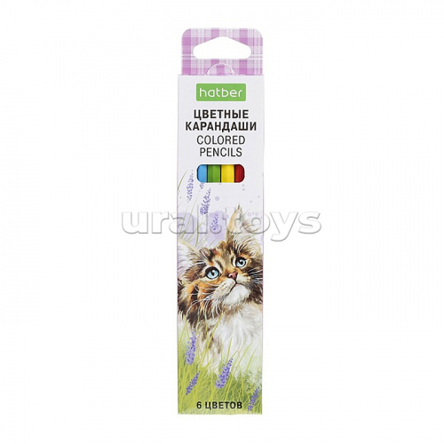 Карандаши цветные 6цв. ECO "Котики бывают разными" заточен. в карт. коробке с европодвесом