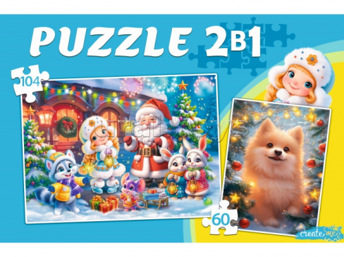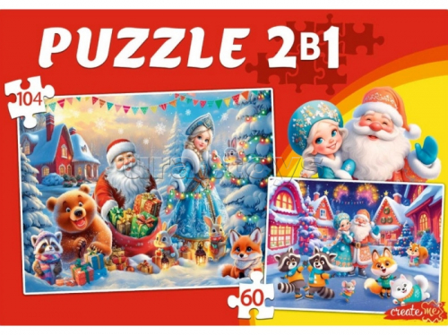 Пазлы 2 в 1. 60 и 104 "Новогодние развлечения"