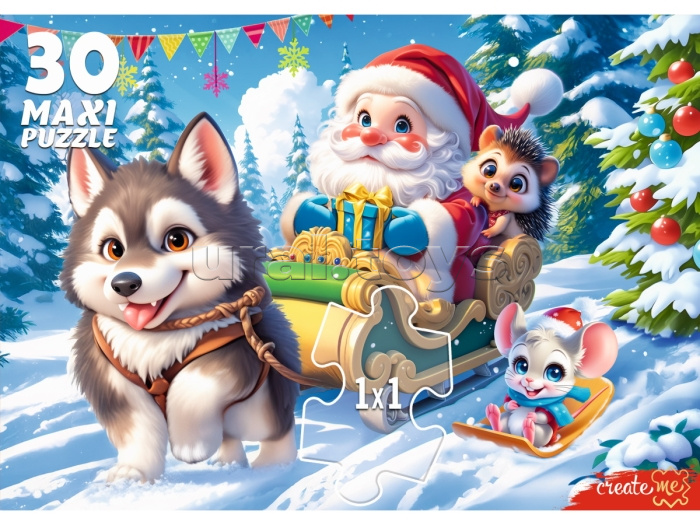 Пазлы 30 MAXI "Хаски и Дед Мороз"