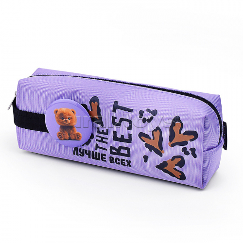 Пенал 200х75х50мм на молнии мягкий "Пушистый мишка" Сиреневый, в пакете с европодвесом