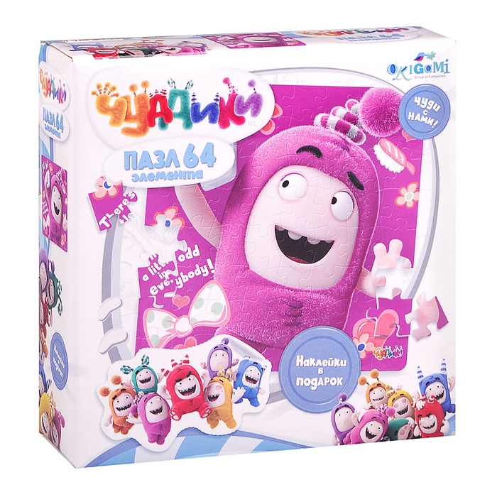 Пазл 64 элемента. Чудики. +наклейки в подарок ассорт (Возможно нарушена, помята упаковка, количество элементов как и указанно)