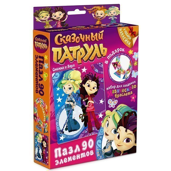 • АртикулПазл 90 элементов. Сказочный Патруль. + набор для создания магического браслета + наклейки. Асоорт (Возможно нарушена, помята упаковка, количество элементов как и указанно)