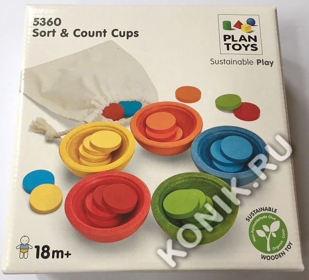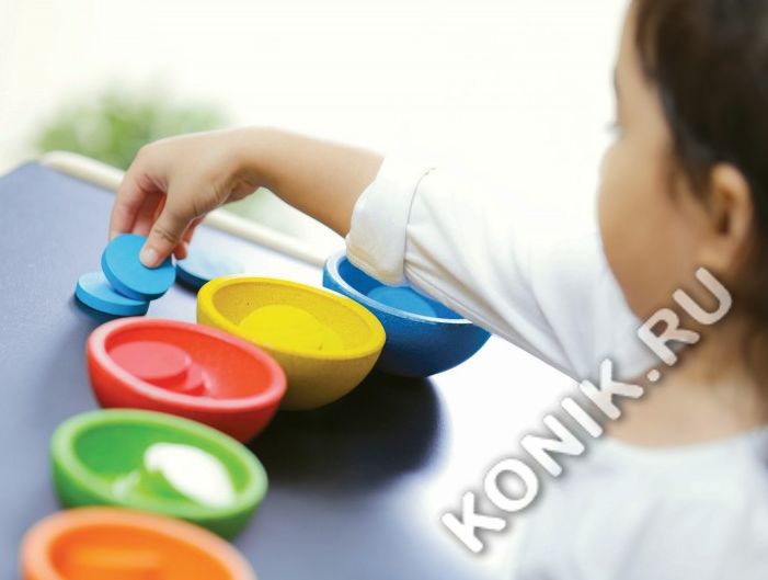 Яркий набор Счёт и сортировка станет не только увлекательной, но и развивающей игрой для вашего ребенка. Малыш должен высыпать разноцветные фишки из мешочка, разложить их по цветах и сосчитать, складывая в пиалочки соответствующих цветов. С этим набором малыши прекрасно научатся считать и различать цвета, искать их соответствие друг с другом, в процессе игры также замечательно развивается мелкая моторика и координация ручек, внимание и сообразительность. Игра рекомендована производителей для детей в возрасте от 18 месяцев. Все детали изготовлены из высококачественного каучукового дерева с использованием нетоксичных красок и обработанными краями, что абсолютно исключает вероятность травмирования.