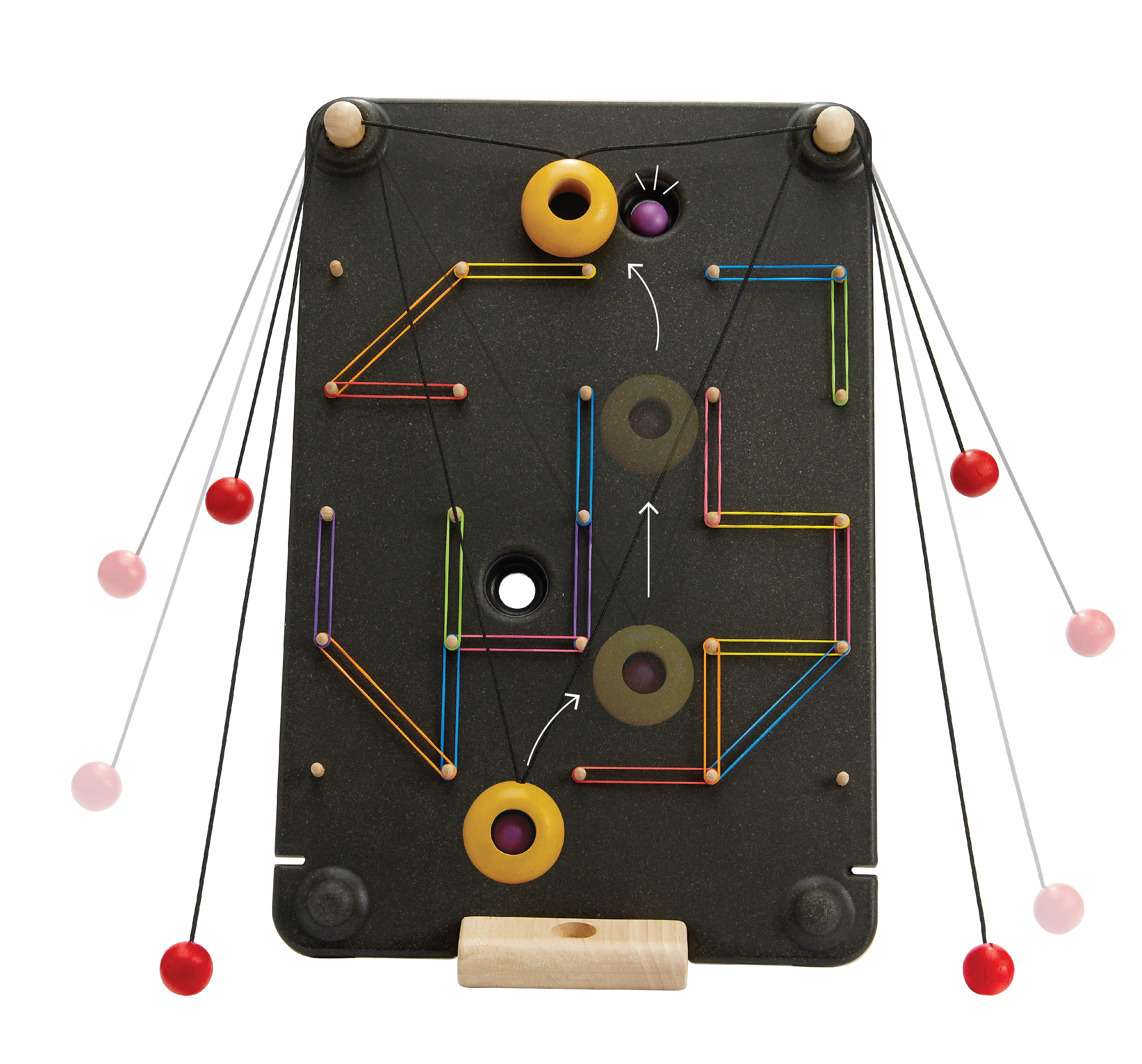 Настольная игра «Лабиринт» от PlanToys требует значительной концентрации и внимания! Перемещайте желтый шарик вверх по лабиринту, не давая ему упасть. Сложность уровням можно задавать самостоятельно: установить препятствия из резинок или нарисовать мелом монстров, которые необходимо обходить. Игра способствует развитию внимания и стратегического мышления.