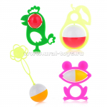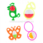 Погремушки имеют двойное назначение: развивающее - подвижная часть (шарик) тренирует концентрацию внимания зрения и слуха, и как прорезыватель (рукоятка изготовлена из мягкого, но прочного материала).
