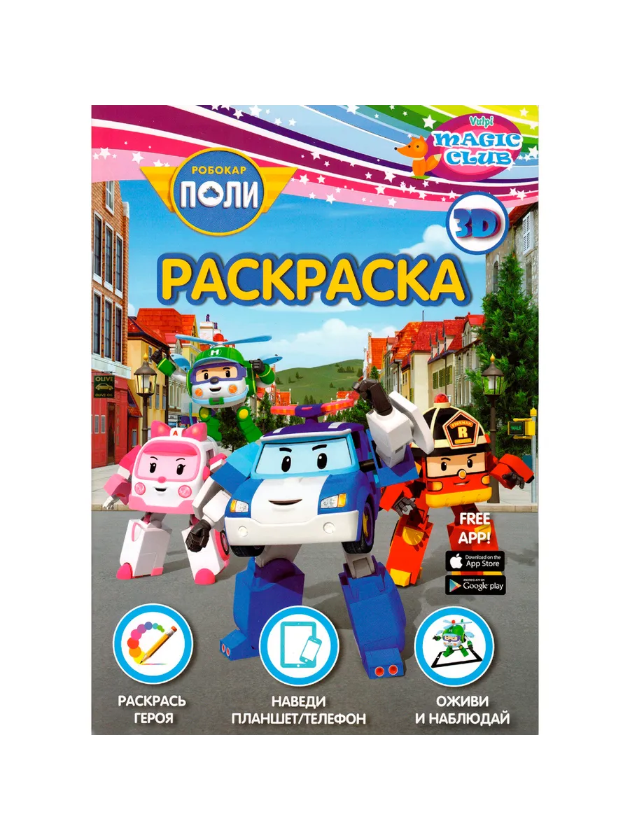 Раскрась! Робокар Поли (10 листов раскрасок + карандаши)