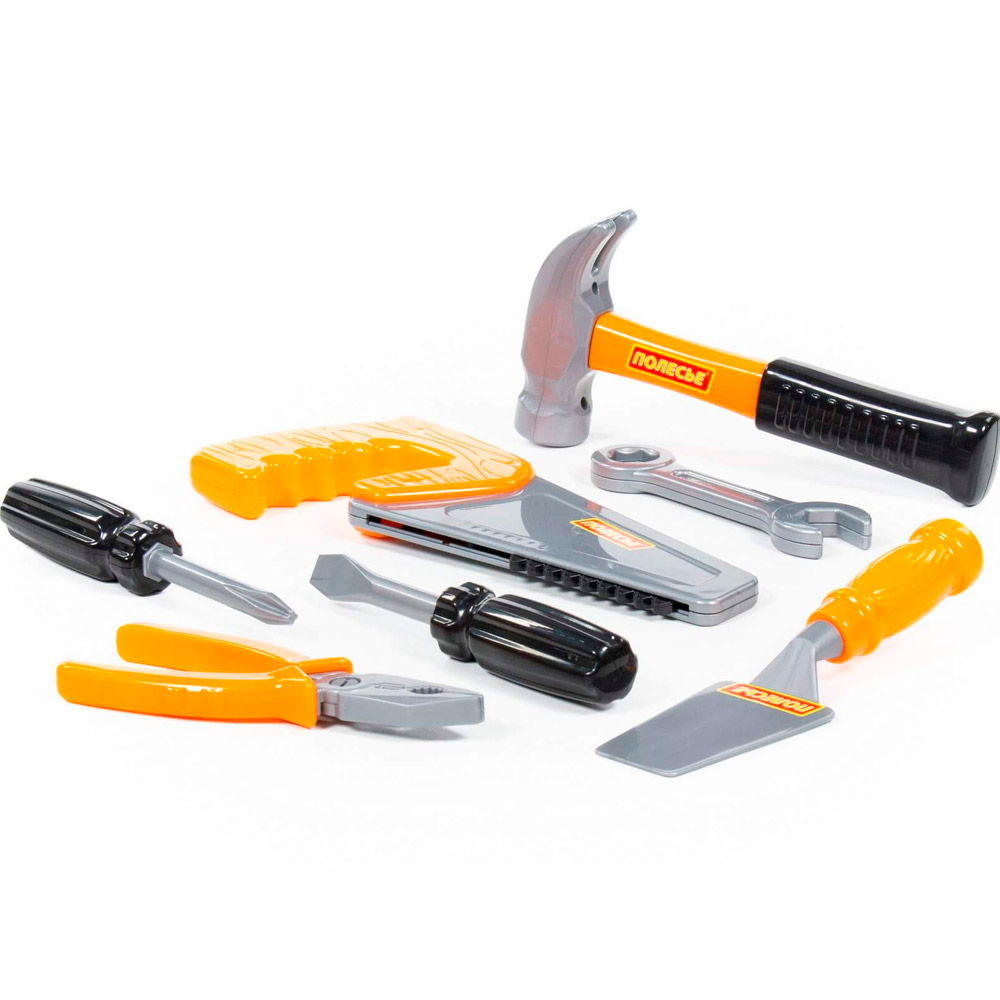 Комплектация: молоток - 1 шт., ключ комбинированный: рожковый и накидной – 1 шт., мастерок - 1 шт., пассатижи - 1 шт., отвертку (прямой шлиц) - 1 шт., отвертку (крестообразный шлиц) - 1 шт., пилу-ножовку - 1 шт.