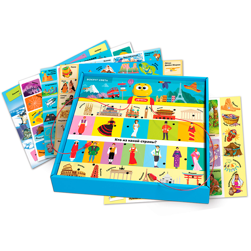 Играя с карточками, ребенок изучит более 200 понятий по разным темам (континенты, страны, народы, обычаи, культура, архитектура, достопримечательности, животные, природа) и подберет более 130 логических пар.