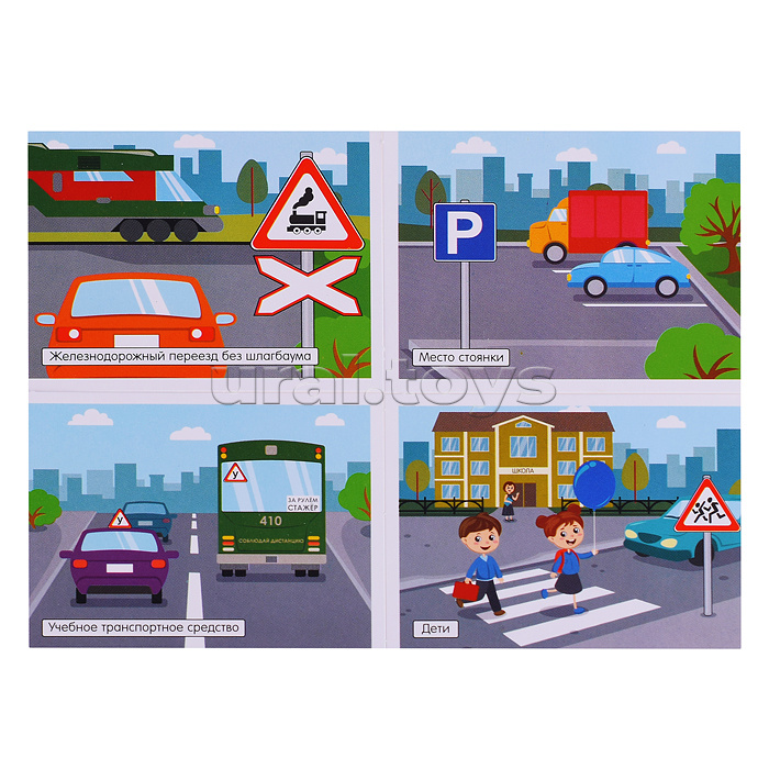 Игра «Дорожные знаки» предназначена для ознакомления детей с основами правил дорожного движения. К красочным сюжетным картинкам игрокам нужно подобрать соответствующий дорожный знак. Развивающее пособие «Дорожные знаки» поможет родителям и учителям объяснить ПДД легко и доступно, научить малышей правильному поведению на дорогах, а также развить у юных пешеходов внимание, зрительную память и кругозор.