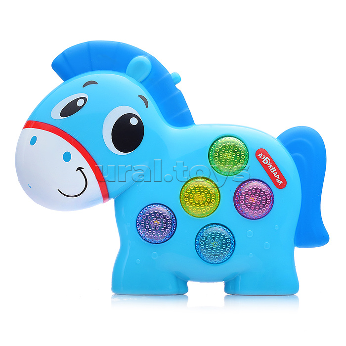 Нажимая на разноцветные кнопочки, малыш послушает веселые песенки и мелодии ("Ждет лошадка малышей", "Догони", "Веселая карусель", "Сколько пальчиков на ручке?", "Песенка фермера", "Немецкая полька" и др. ), а также множество забавных звуков и голосов зверят