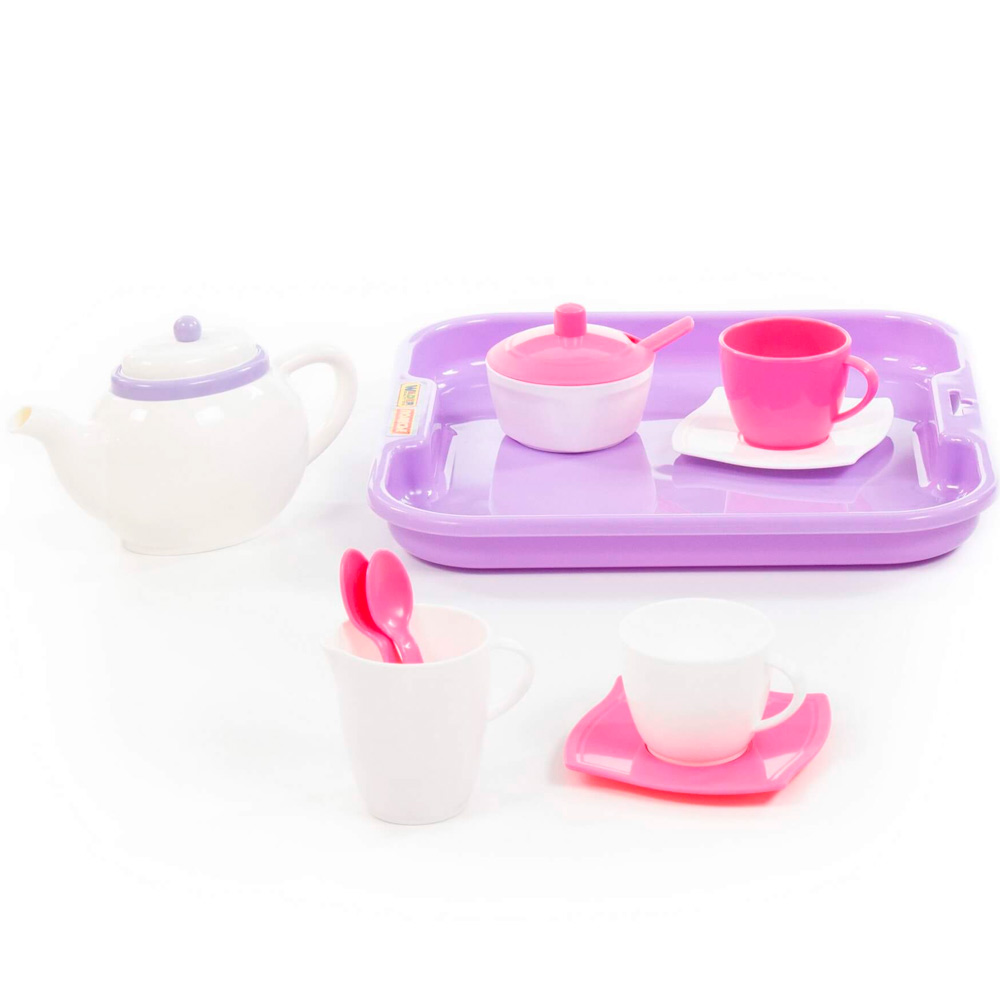 Комплектация: чайник - 1 шт., сливочница - 1 шт., блюдца - 2 шт., чашки - 2 шт., ложки - 3 шт., сахарница - 1 шт., поднос - 1 шт.