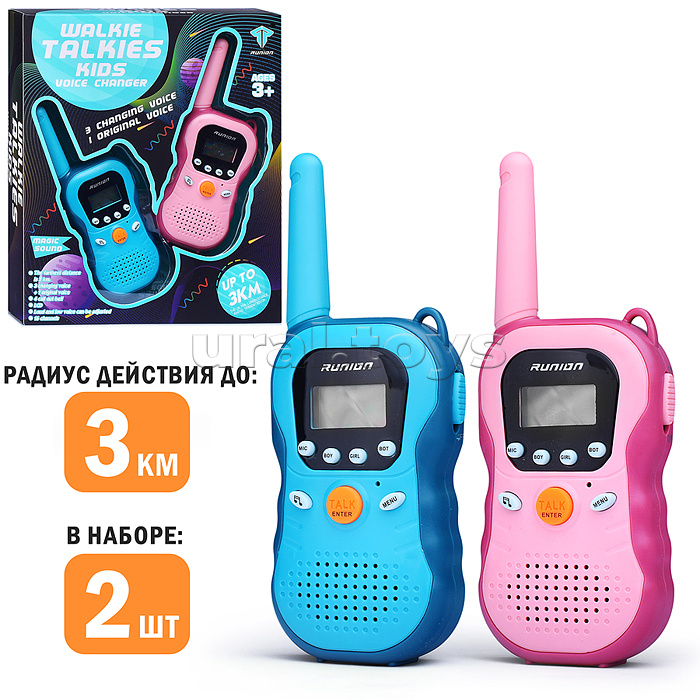 Комплект рассчитан на 2-х человек, которые могут спокойно переговариваться друг с другом на расстоянии до 3 КМ на открытой местности.