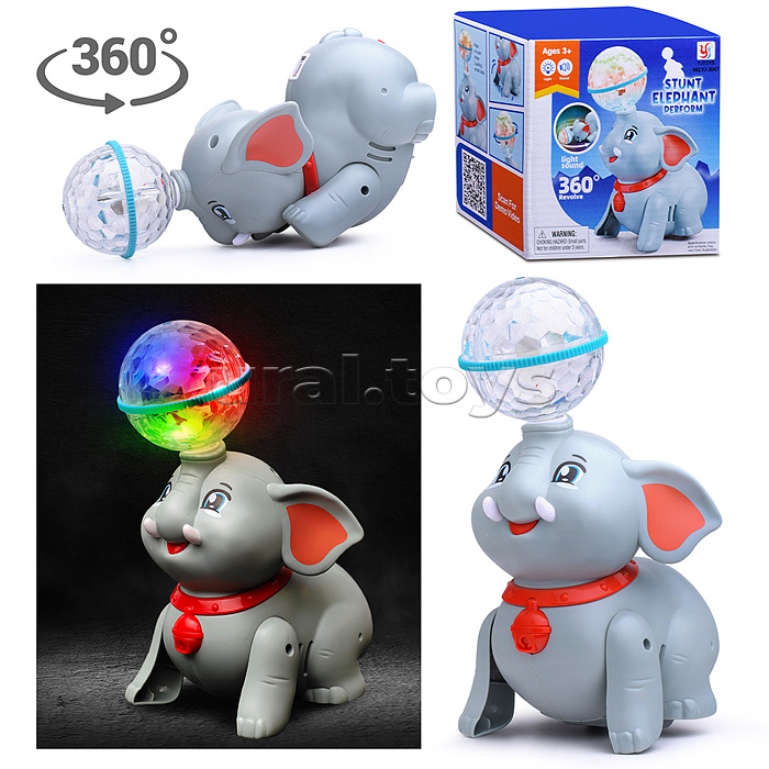 Слон "Ушастик" с шариком, на батарейках, в коробке