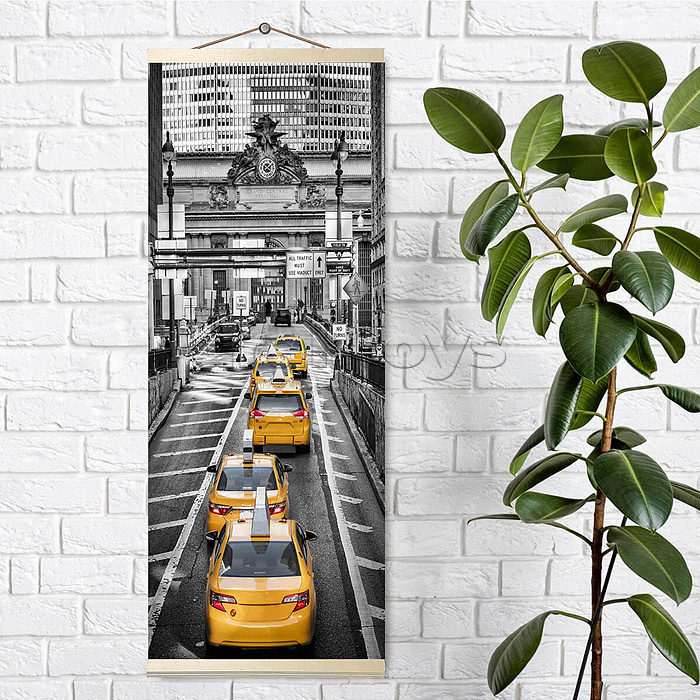 Алмазная мозаика панно 35х90 "Такси в Нью Йорке" (16 цветов)