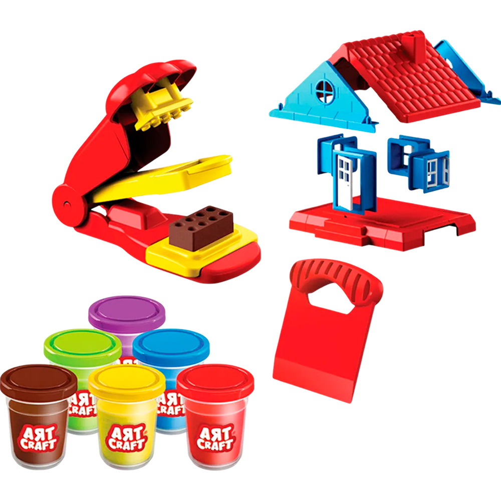 Комплектация: тесто - 6 цв. по 56 г, детали дома, станок для кирпичей - 1 шт., скребок - 1 шт.
