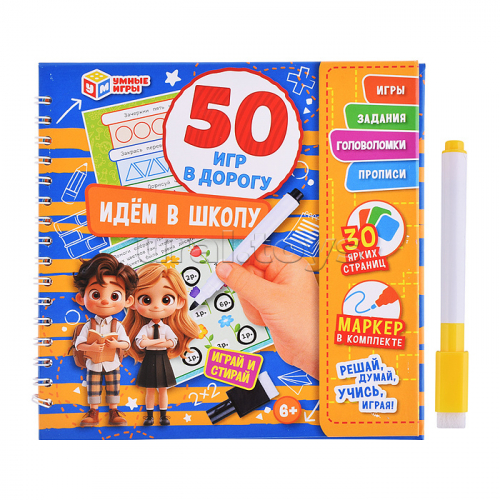 Блокнот на пружине с маркером "Головоломки" 50 игр в дорогу 160х160х20 мм.