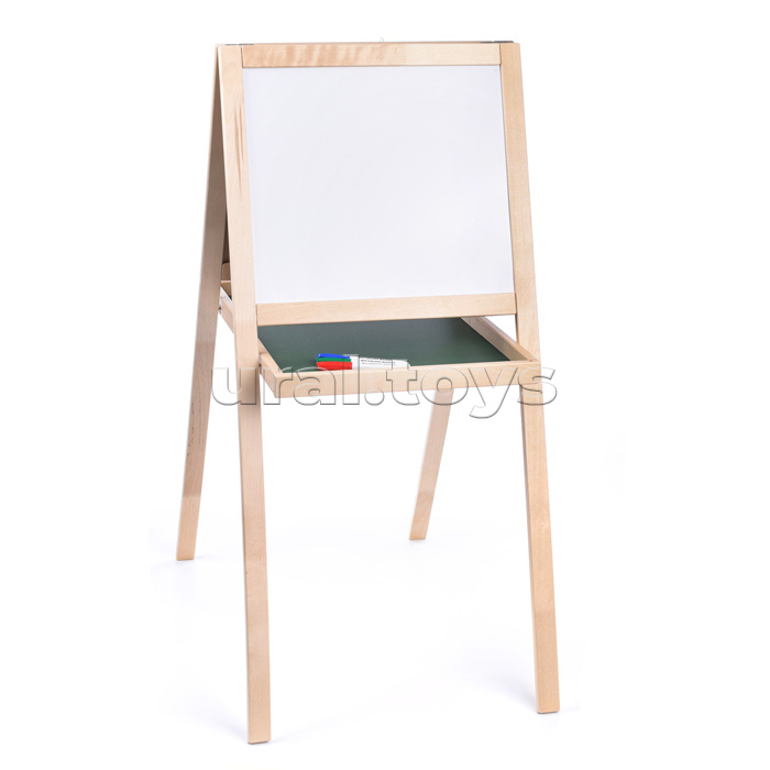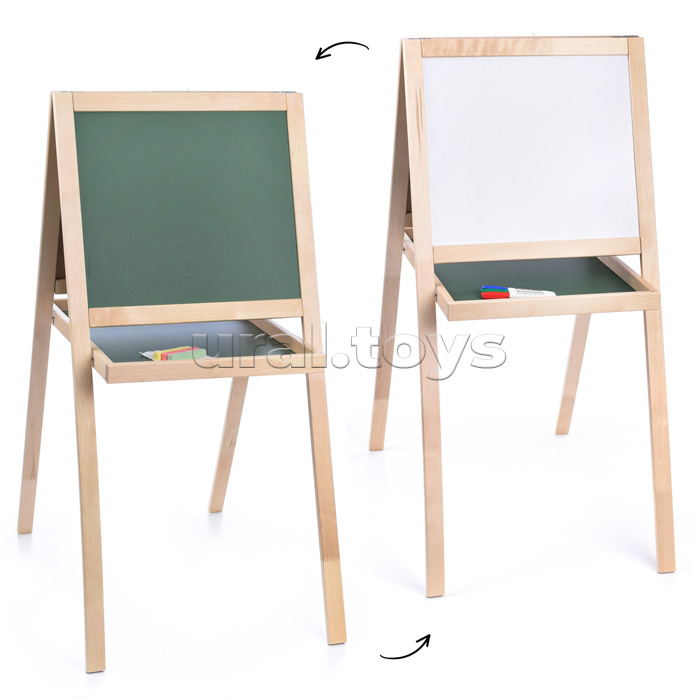 С мольбертом не придётся уговаривать детей рисовать или писать. Они с удовольствием будут делать это сами. Двусторонняя доска позволяет рисовать как маркером на водной основе – с одной стороны, так и мелом – с другой. Магнитно-маркерная сторона доски удобна для проведения обучающих занятий на дому и может быть использована как основа для наборов магнитных букв, цифр и знаков, магнитной мозаики и других магнитных игр.