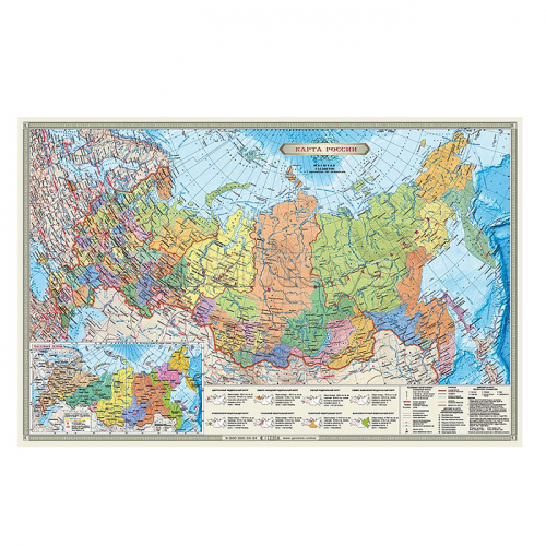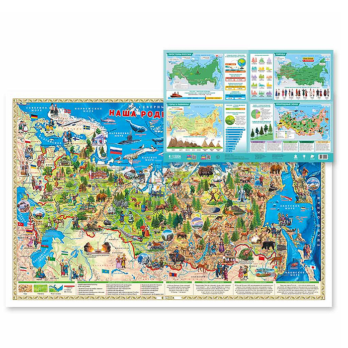 Карта Наша Родина-Россия с инфографикой, 58х38 см, двухсторонняя. лам. с европодвесом