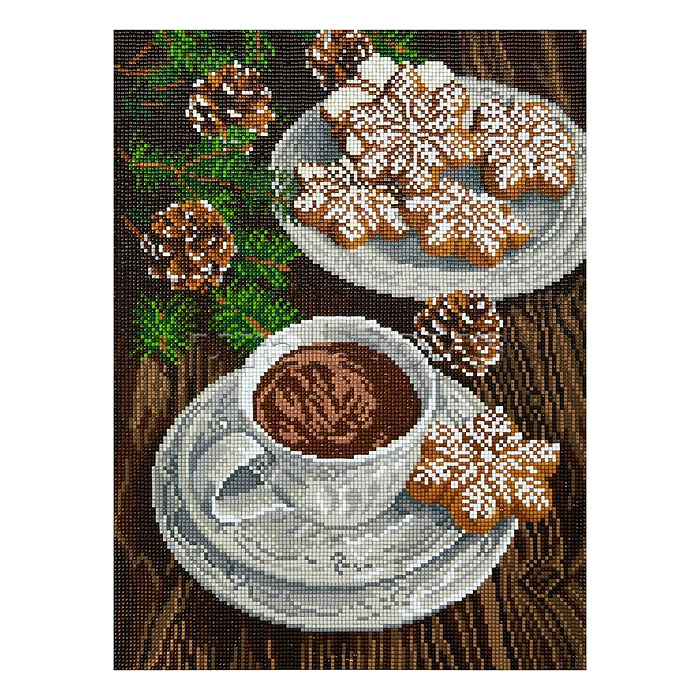 Кристальная (алмазная) мозаика на подрамнике "Какао с пряниками" 30х40 см.
