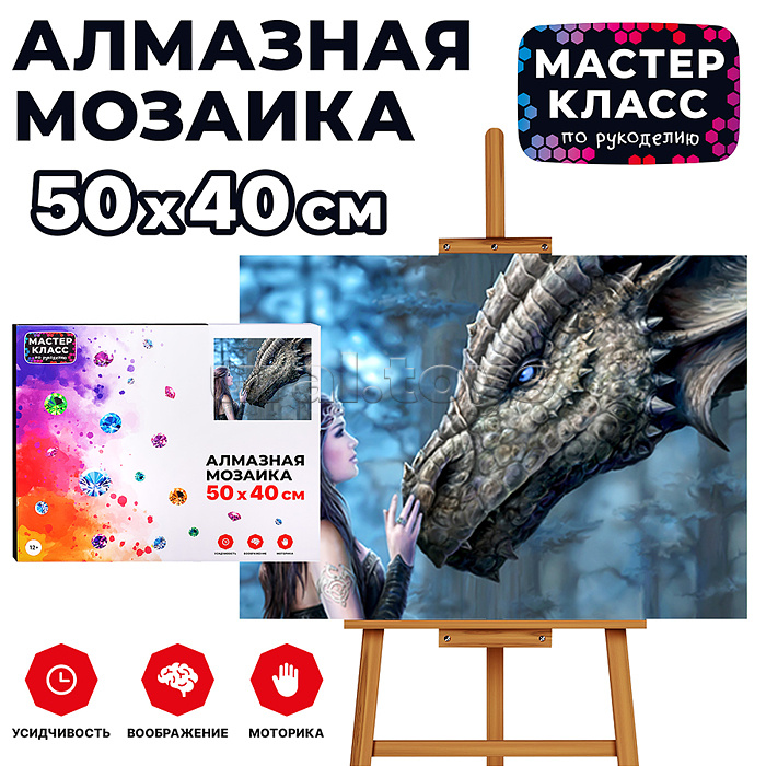 Мозаика алмазная "Дракон и девушка" 40*50см.