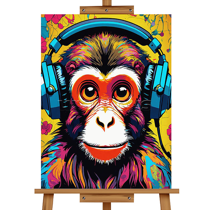 Мозаика алмазная "Обезьяна в наушниках" 40*50см.