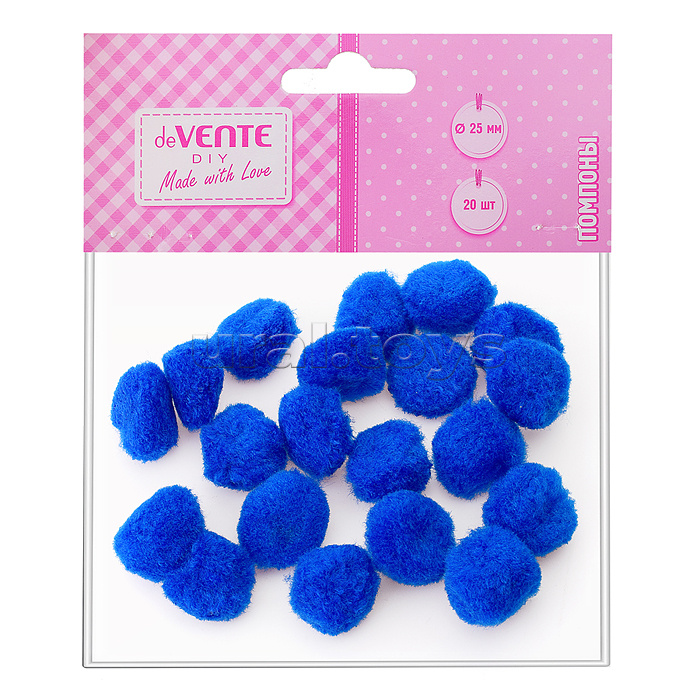 Набор помпонов для творчества 25 мм, 20 шт, цвет синий.