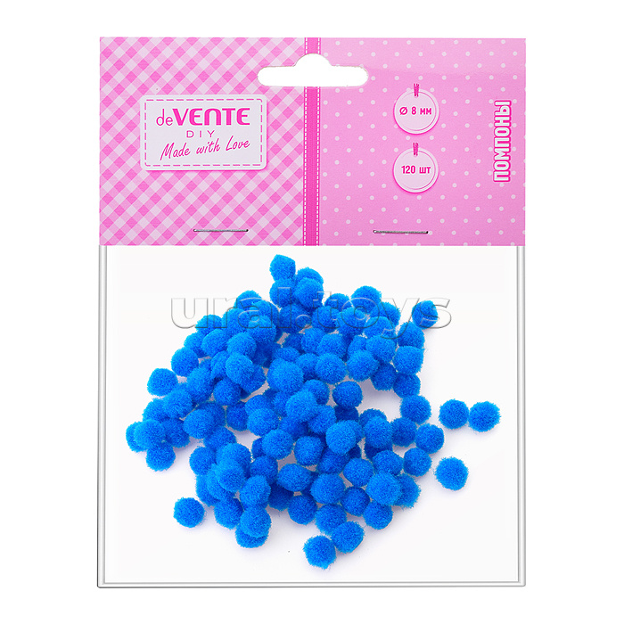 Набор помпонов для творчества 8 мм, 120 шт, цвет голубой.