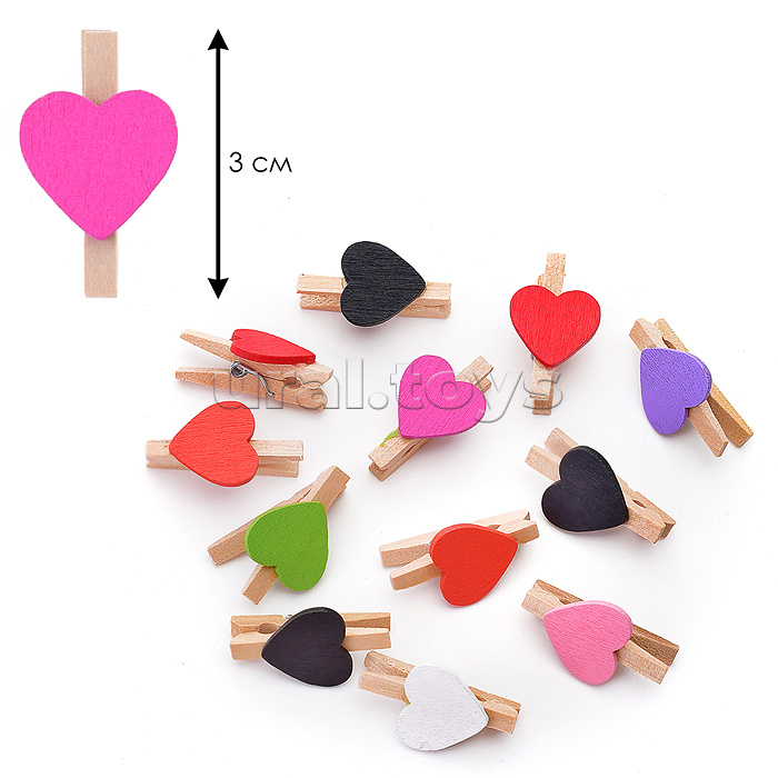 Набор прищепок декоративных деревянных "Сердечко" 10 шт 3*0.4*10 см.