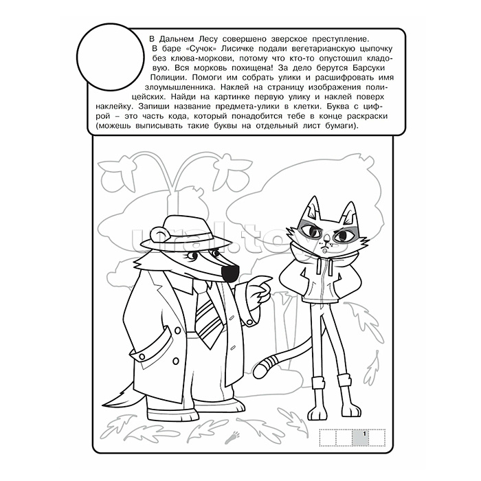 Раскраска с многоразовыми наклейками № РН 2414 "Зверский детектив"