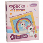 • В наборе: трафарет с клейкой основой, набор цветного песка (5 цветов), деревянные палочки.