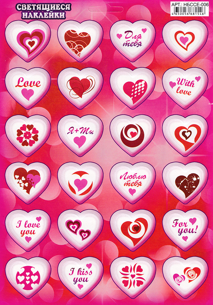 Светящиеся наклейки "Сердечки" НБССЕ-006