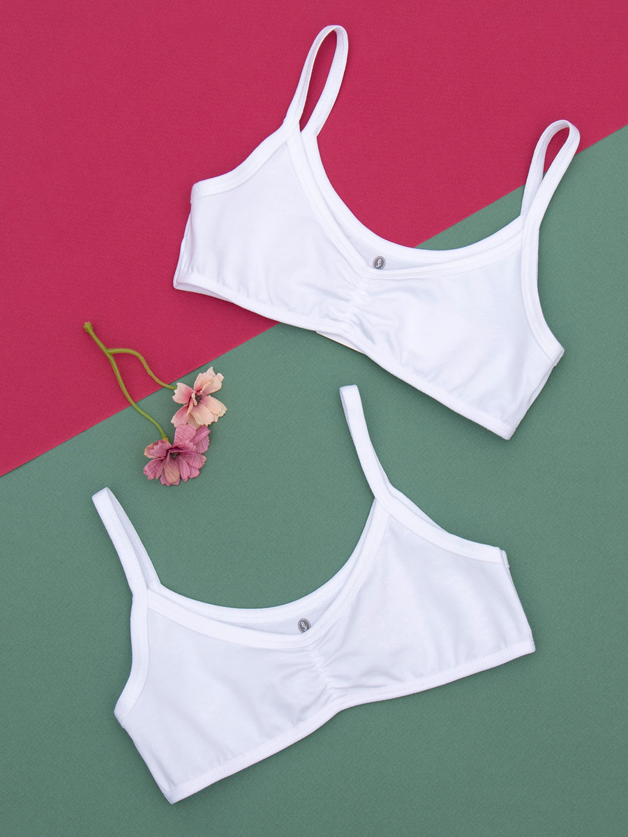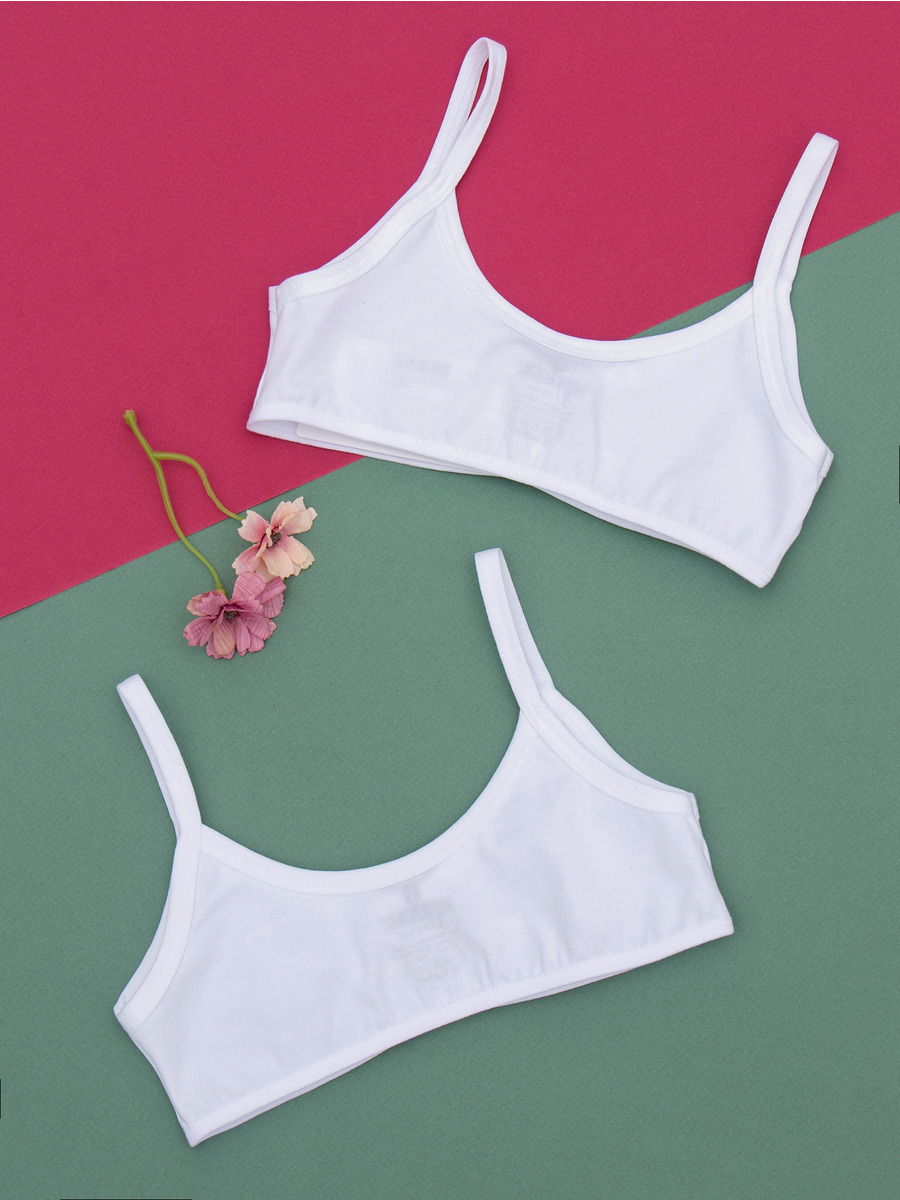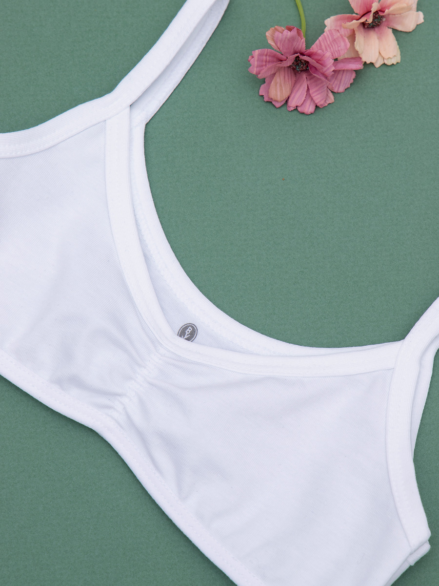 Топ из хлопка для девочки на тонких бретельках, цвет белый, без рисунка.