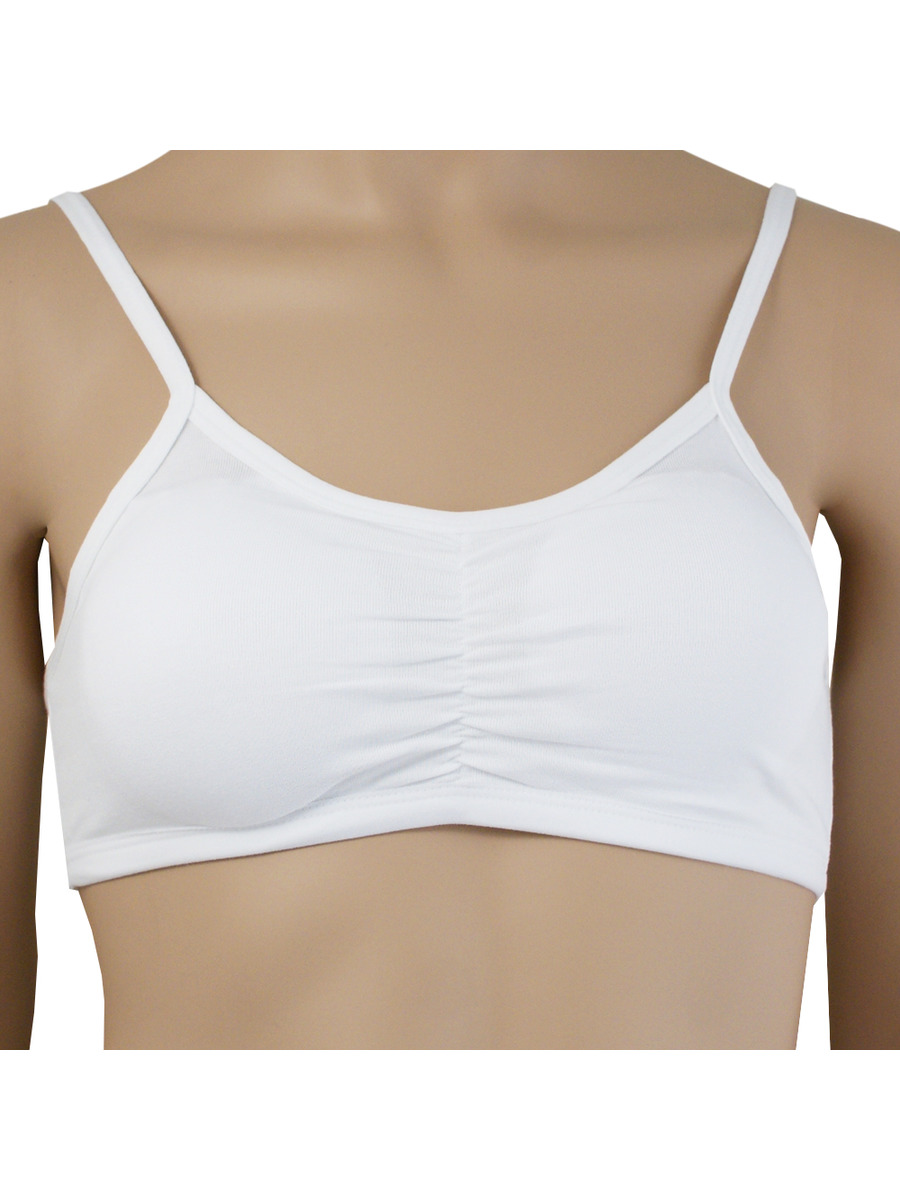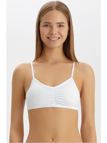 Топ из хлопка для девочки на тонких бретелях, цвет белый, без рисунка.