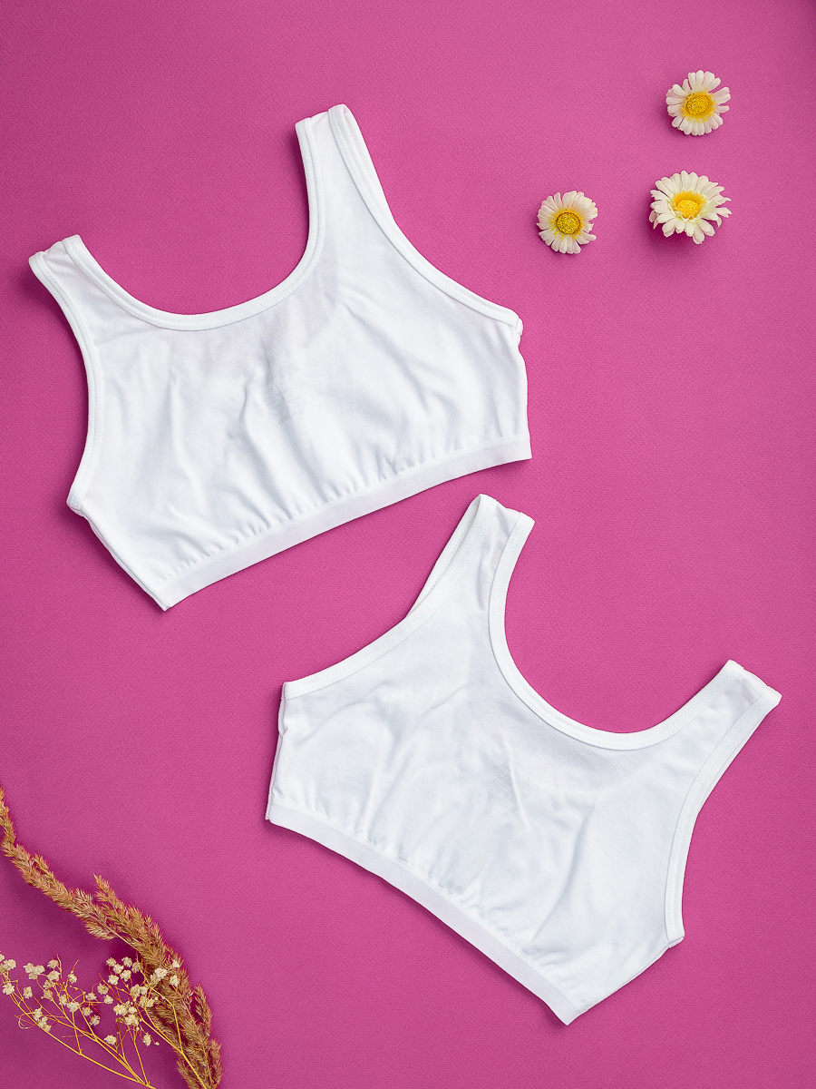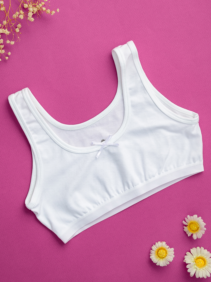 Топ из хлопка для девочки на широких бретелях, цвет черный, белый, без рисунка.
