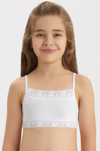 Подростковый бюстик телесного цвета мягкий и комфортный, почти неощутимый на теле. Все швы детского бюстика гладкие и не будут беспокоить ребенка во время активных занятий. В проймах эластичные бейки.