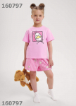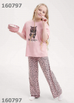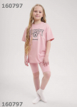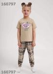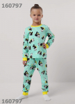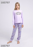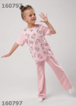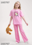 "Описание: Очаровательная хлопковая пижама. Обтачка горловины и манжеты брюк из эластичного полотна. Пояс брюк с резинкой. Модель украшена оригинальным ярким принтом.