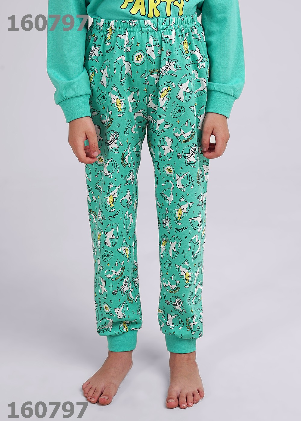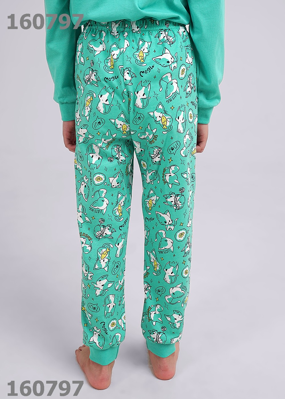 Очаровательная пижама из мягкого хлопка. Обтачка горловины, манжеты по низу рукавов и брюк из эластичного полотна. Эластичный пояс обеспечит комфорт и идеальную посадку.