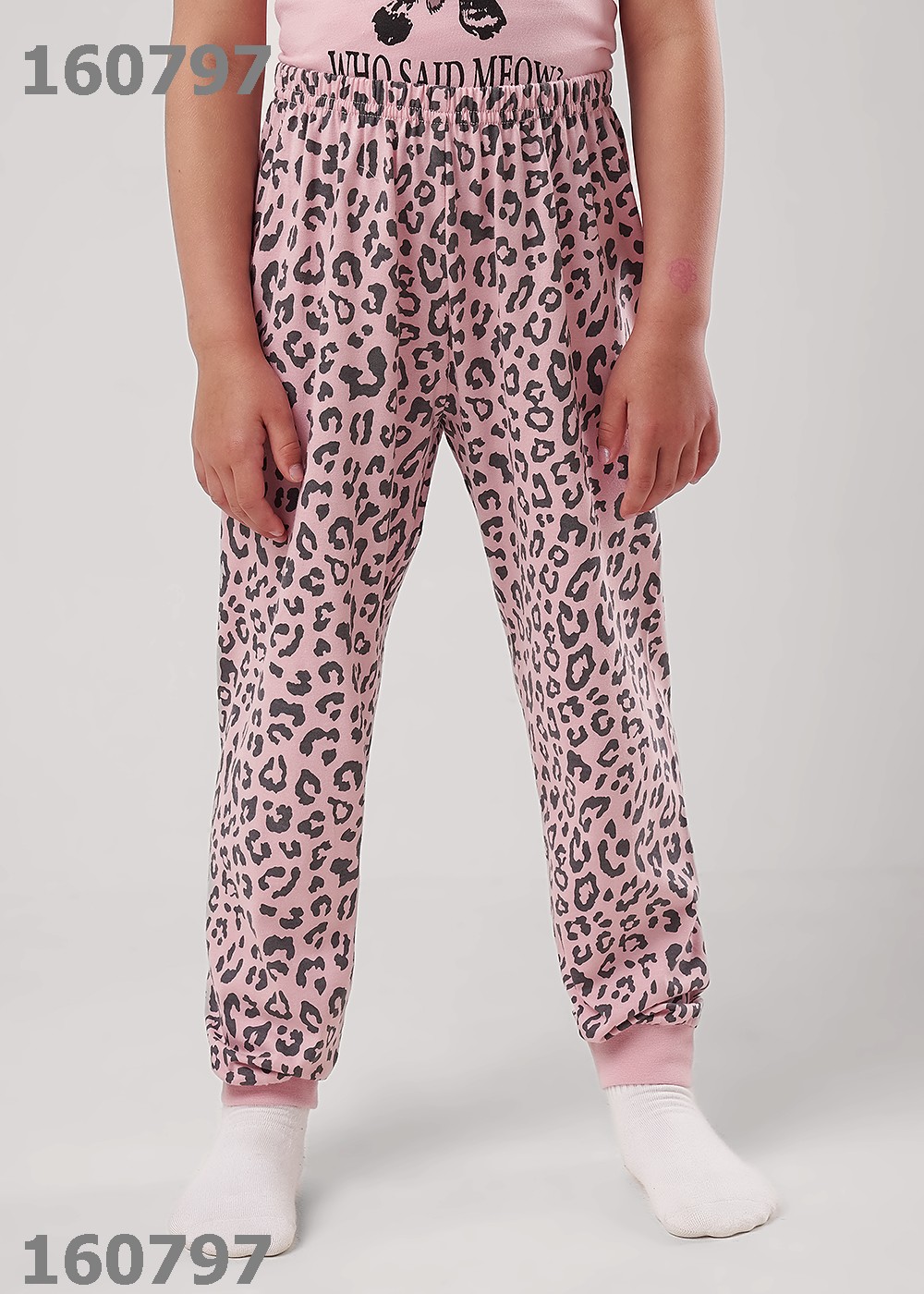 "Описание: Комплект хлопковой пижамы из футболки и брюк. Футболка свободного кроя дополнена эластичной горловиной и милым принтом. Брюки среднего объема, эластичный пояс обеспечит комфорт и идеальную посадку. По низу брюк эластичные манжеты.