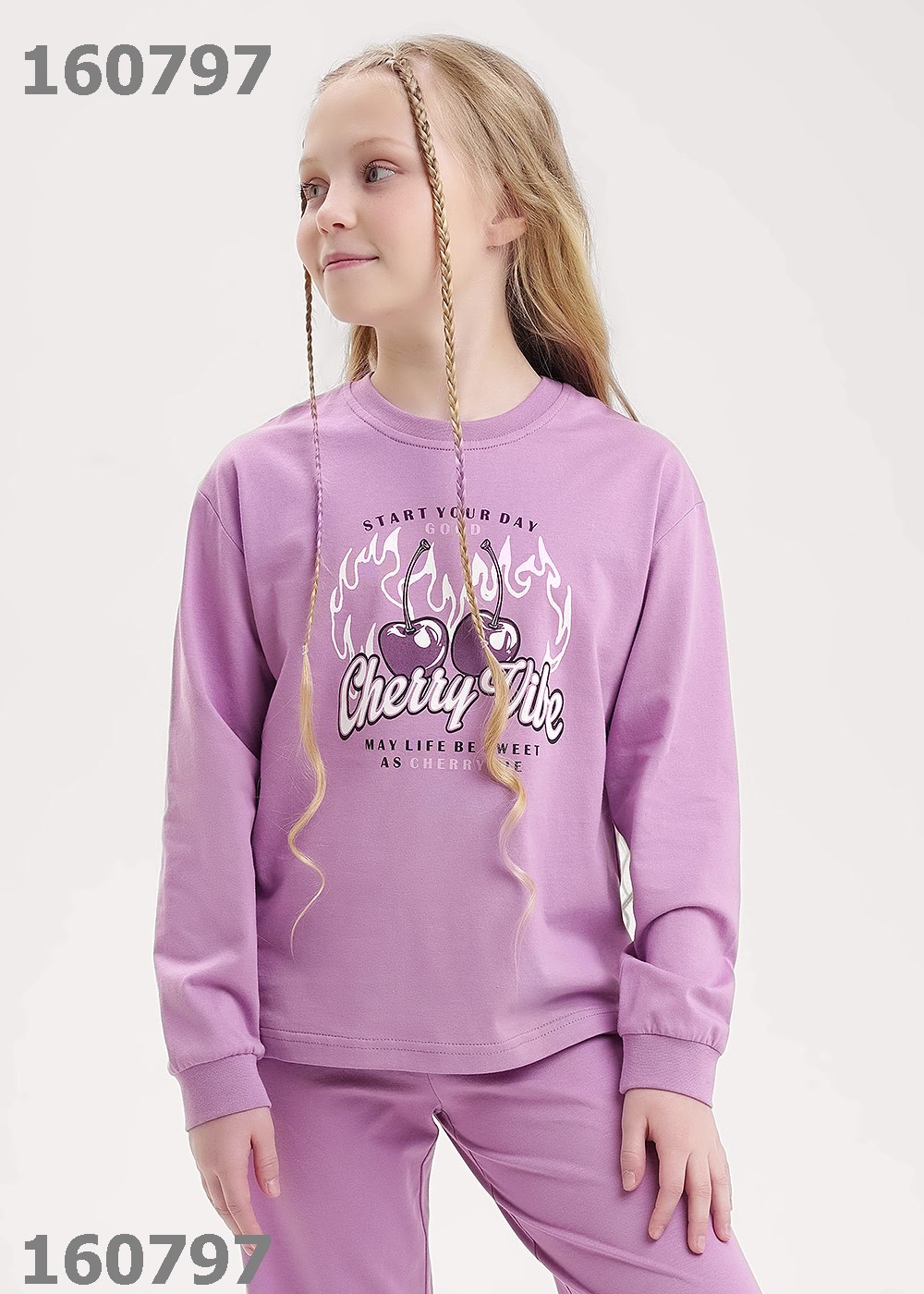 "Описание: Комплект хлопковой пижамы из джемпера и брюк. Джемпер свободного кроя дополнен эластичной горловиной и манжетами. Брюки среднего объема, эластичный пояс обеспечит комфорт и идеальную посадку.