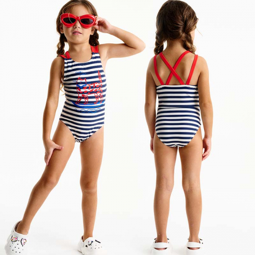 Состав: 80%полиамид 20%эластан, подклад: 100%полиэстерОписание: Модный слитный купальник в для девочки. Модель с двумя парами лямок: одни идут прямо, вторые перекрещиваются на спинке. Бретели мягкие, не сползают, исключают трение и раздражение. Передняя часть изделия с подкладкой — не просвечивает. Детский купальник выполнен из полиамида и эластана — он прекрасно тянется, не теряя при этом своей формы, не выгорает и быстро сохнет. По переду модель декорирована красивым принтом. Принт мягкий и стойкий, не боится частых стирок. Купальник красивый подходит для девочек дошкольного, младшего школьного возраста и девочек-подростков. Отличный вариант для летнего отдыха, пляжа, моря и бассейна. Модный купальник — чудесный подарок дочери, внучке или сестре на любой праздник. Выбирайте нужный размер по таблице размеров на фото. Цвет товара на экране вашего устройства может отличаться от цвета изделия вживую. Товар возврату и обмену не подлежит.