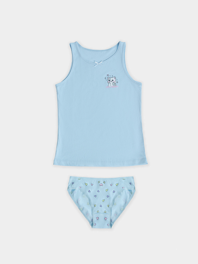 Нежное и красивое нижнее белье детское для девочек. Комплект для девочки выполнен из высококачественного хлопка. Майка свободного силуэта, на бретелях, с небольшим углублением на горловине. Трусики имеют слегка заниженную линию талии, по срезам идет эластичная тесьма. Модель имеет нежные и деликатные швы, ничто не будет давить и стеснять движения вашего ребенка. Комплект состоящий из трусов и майки — отличный выбор нижнего белья на каждый день. Натуральный хлопок отлично пропускает воздух, хорошо впитывает влагу и быстро сохнет. Подойдет для самой нежной кожи за счет гипоаллергенного состава материала. Нательное белье детское хорошо тянется, не линяет и не деформируется при многочисленных стирках. Линейка широкая, есть комплекты в спокойных базовых расцветках, а также интересные варианты с принтами. Трусики и маечка для девочек подойдут для повседневной носки в садик и школу, можно использовать и как пижаму для сна. Удобно, красиво и комфортно. Лучший вариант нательного детского белья от Mark Formelle!