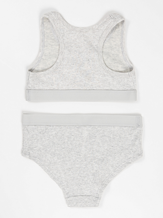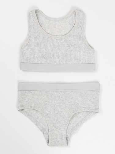 Трусики выполнены из того же дышащего материала, что и топ. Мягкая обработка швов предотвращает натирание, а эластичная тесьма по верхнему краю надежно фиксирует изделие. Комплект нижнего белья для девочки подходит для повседневной носки, занятий спортом или отдыха. Этот детский комплект сочетает практичность и стиль: лаконичный дизайн без лишних деталей, качественные материалы и продуманная конструкция. Вы можете купить комплект нижнего белья для девочки для активного образа жизни, где важны удобство, свобода движений и комфорт.