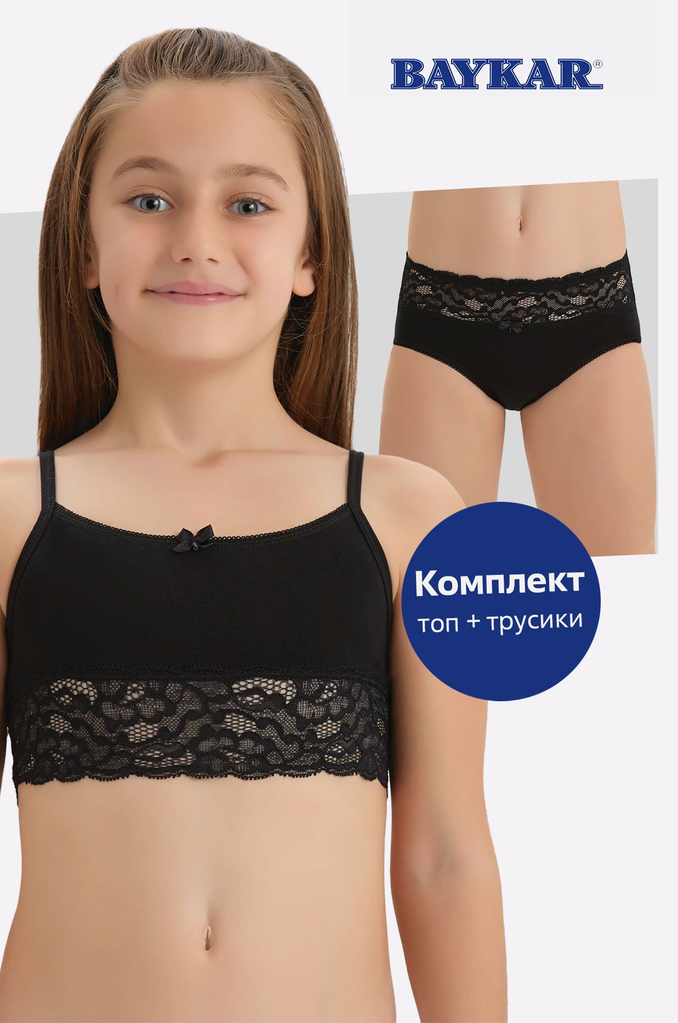 Кружевной комплект идеален на каждый день. Подростковое белье для девочки подойдет для походов в детский сад, на прогулки, в школу, в нем удобно спать. Качественное нижнее белье на девочку сохраняет форму после частых стирок, не скатывается.