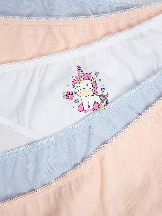 Комплект трусов-слипов (5 шт.) для девочек, в однотонных цветах и с принтом, с ажурным краем